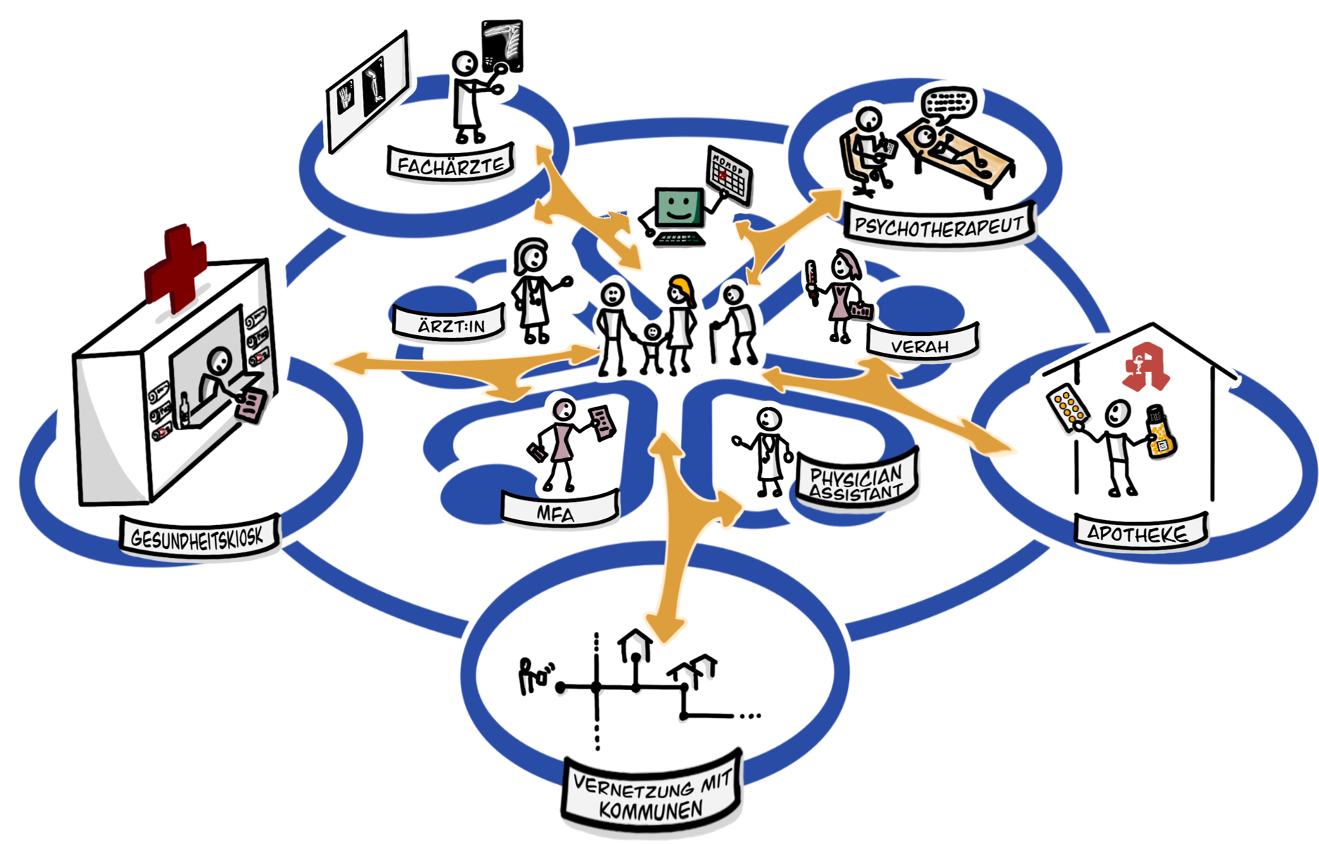 „HÄPPI“ steht für Hausärztliches Primärversorgungszentrum mit interprofessioneller Patientenversorgung – ein modernes Konzept, das Teamarbeit, Digitalisierung und patientenzentrierte Medizin in den Mittelpunkt stellt.